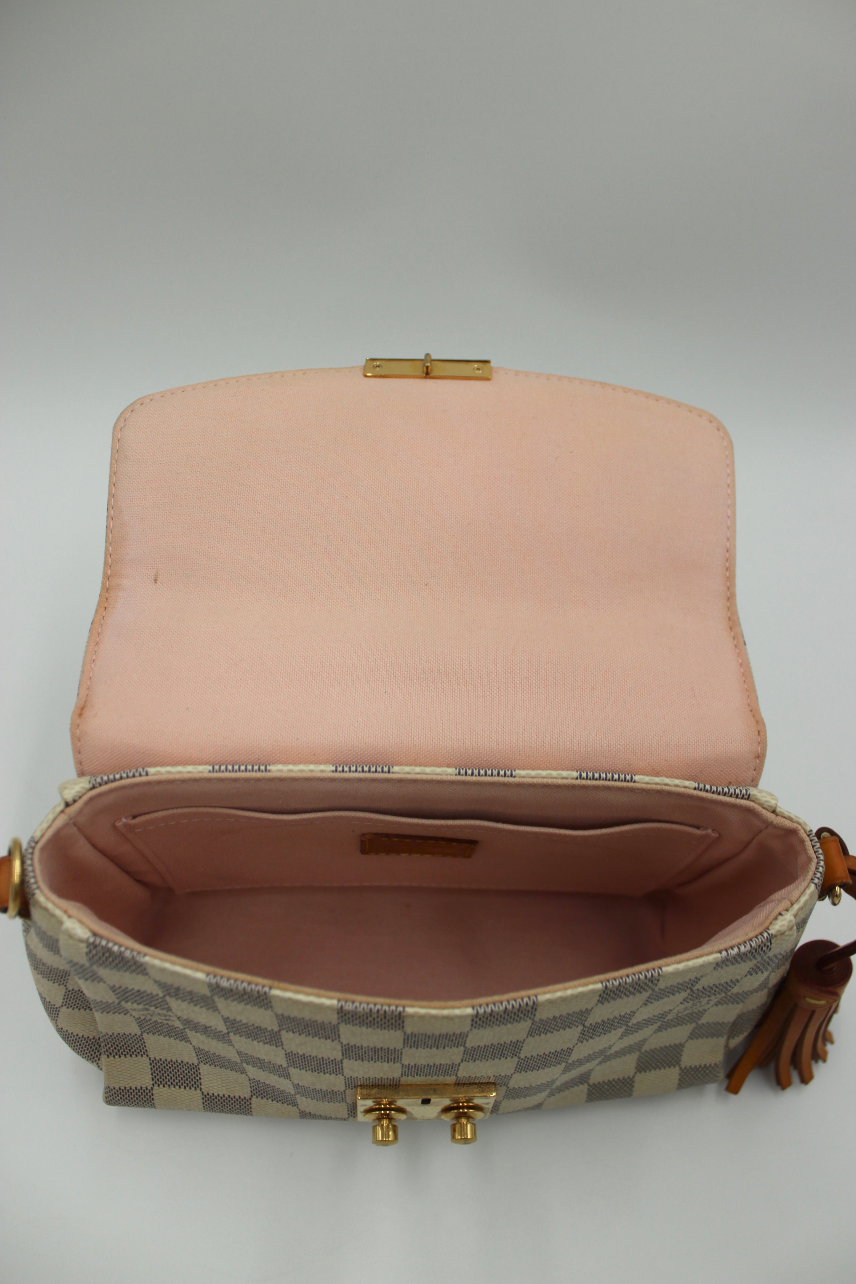 Louis Vuitton Damier Azur Croisette er en elegant og tidløs taske, der kombinerer klassisk design med praktisk funktionalitet. Tasken er fremstillet i det ikoniske Damier Azur coated canvas med detaljer i naturligt læder. Den er kompakt, men rummelig nok til hverdagens nødvendigheder og kan bæres både til dag- og aftenbrug.