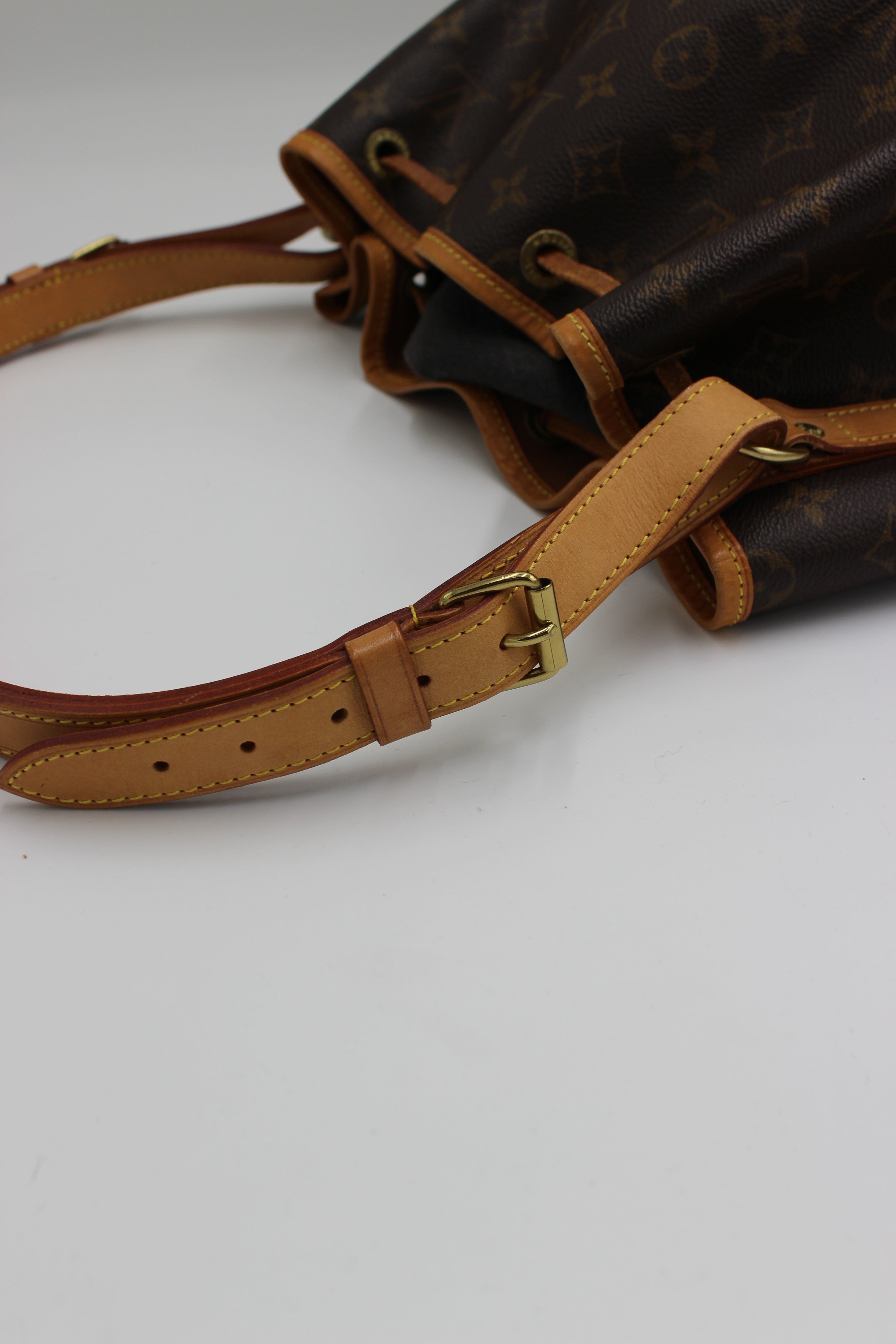 Taskens historie: Oprindeligt designet til at bære champagneflasker. Med sit ikoniske snøre-luk og tidløse monogram lærred er Noé både elegant og praktisk.