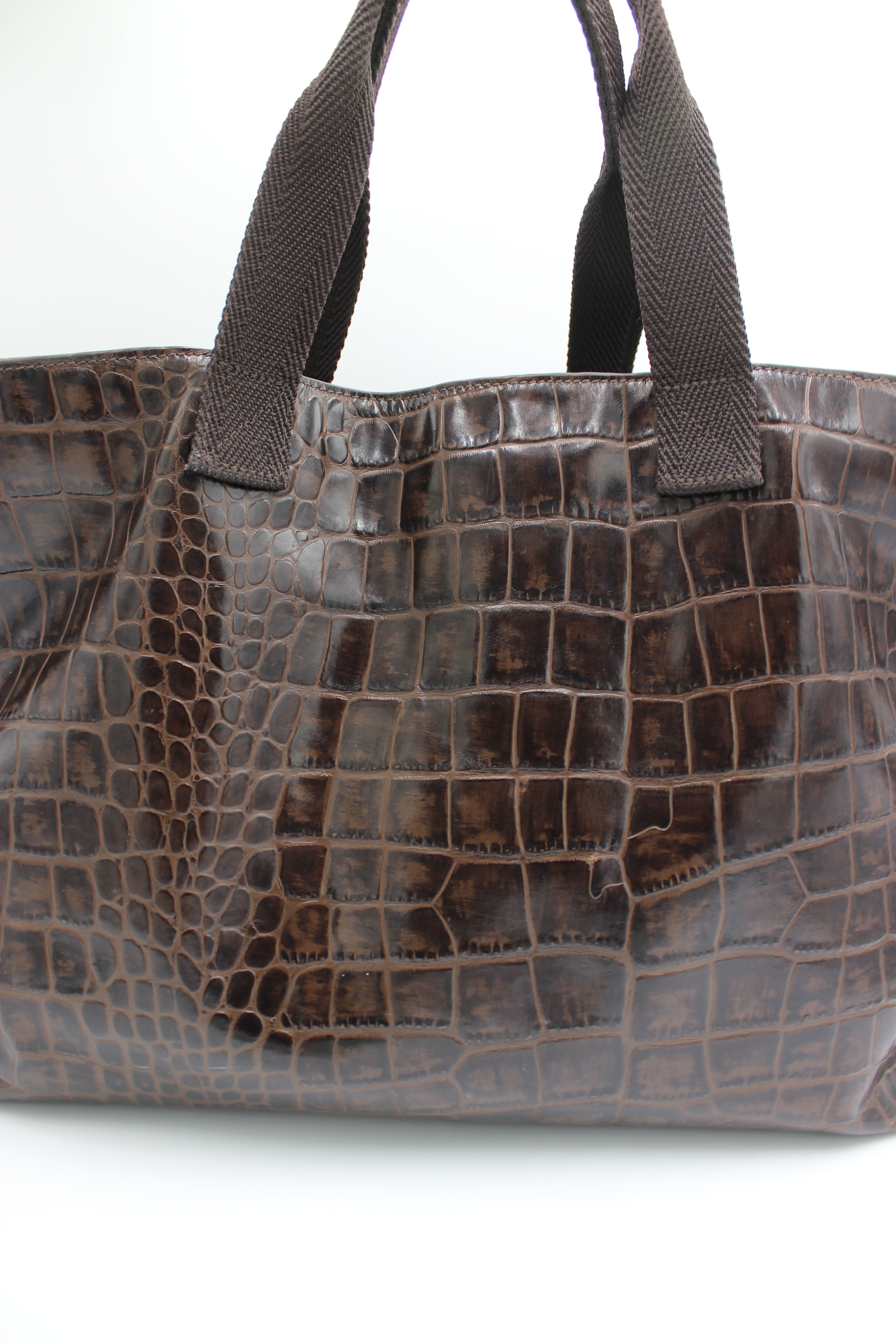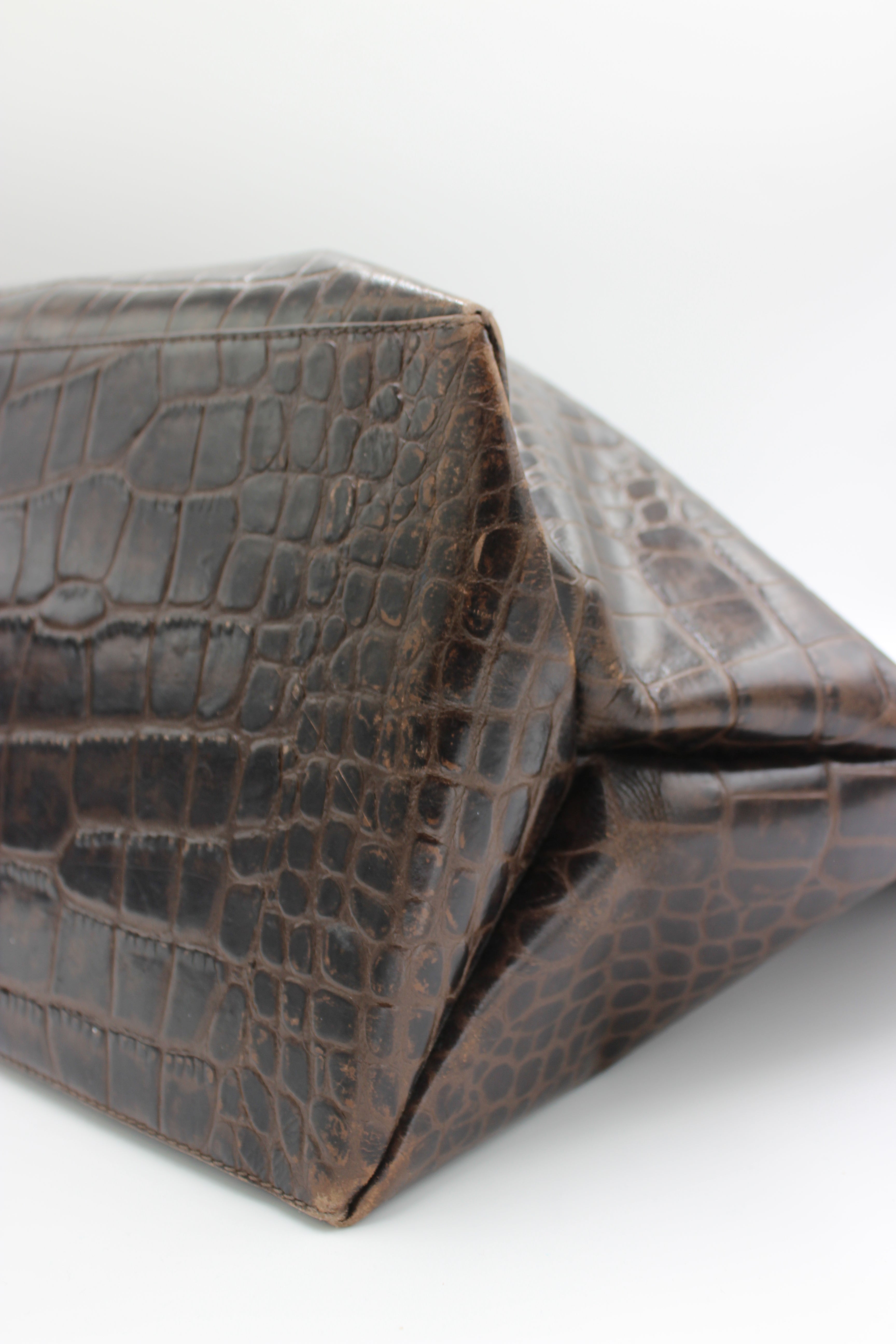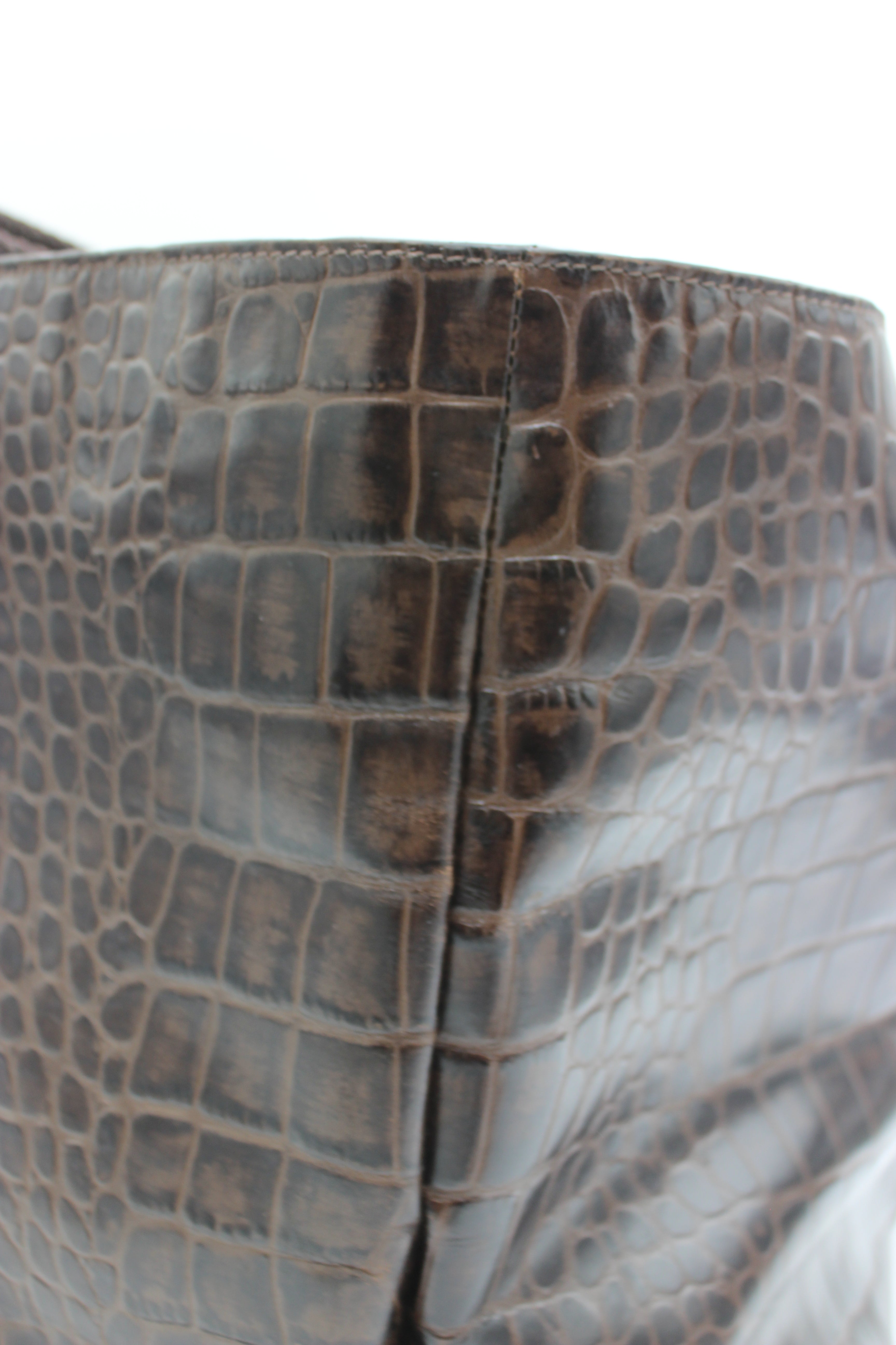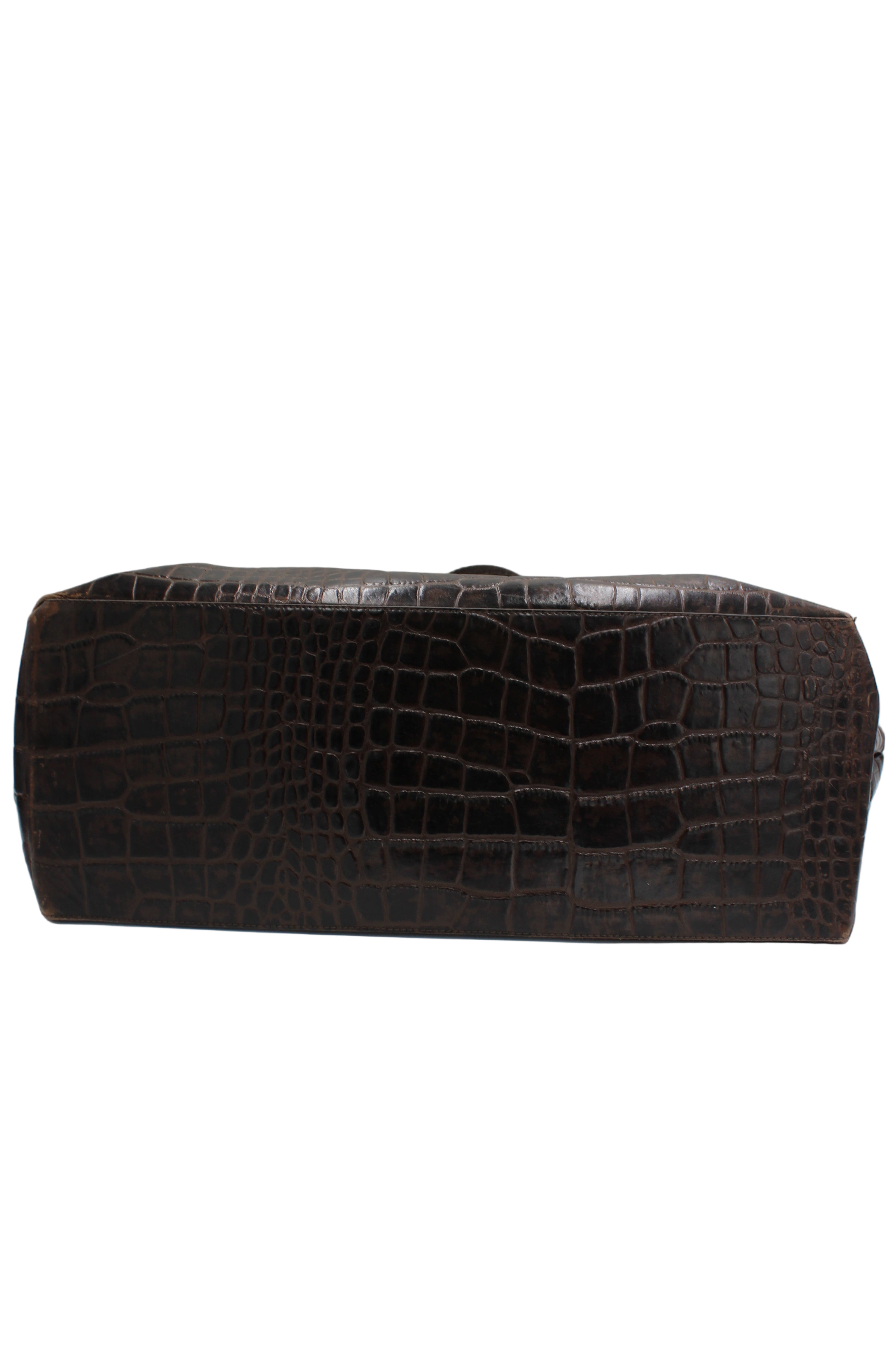 • Crocodile-embossed brown leather finish
