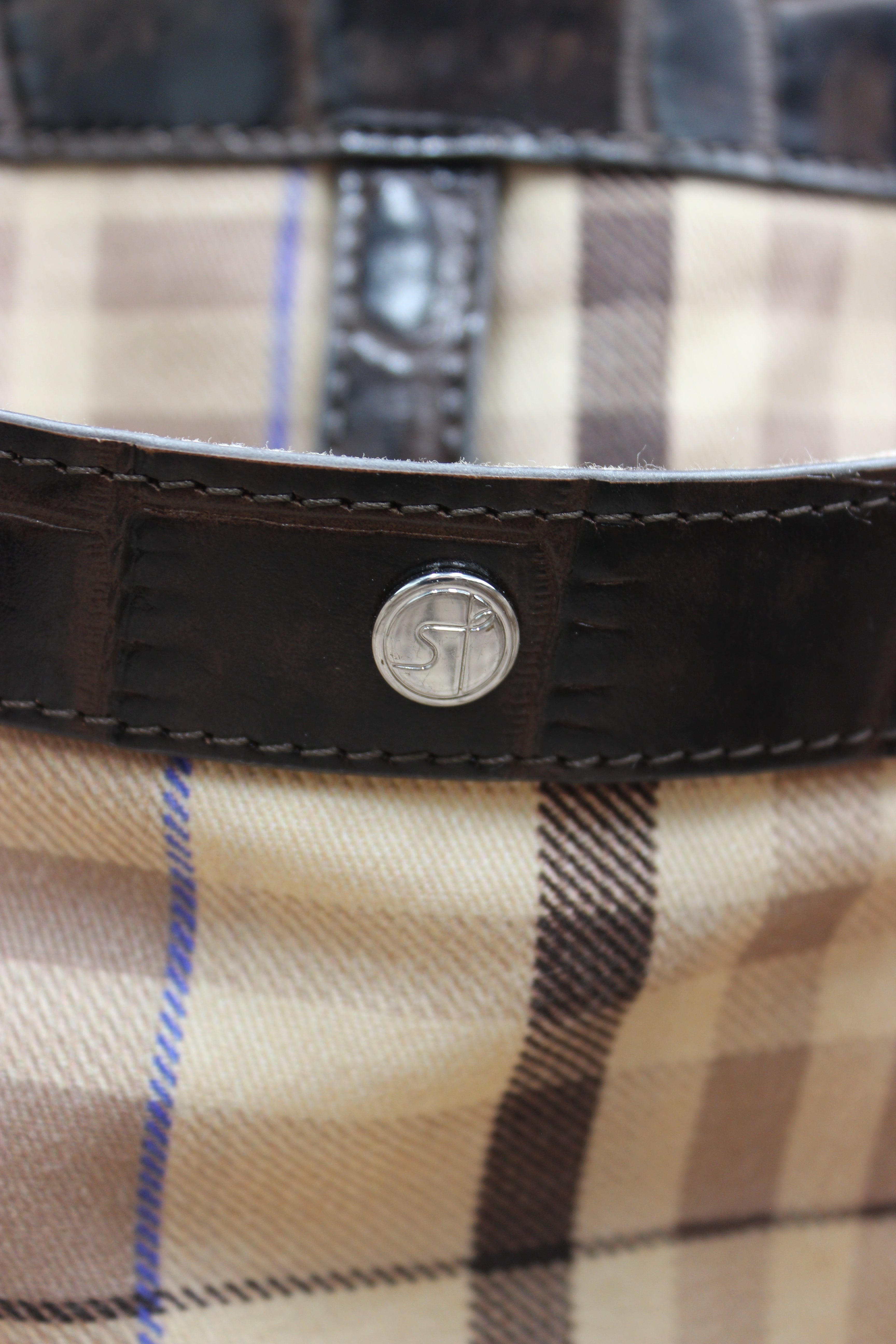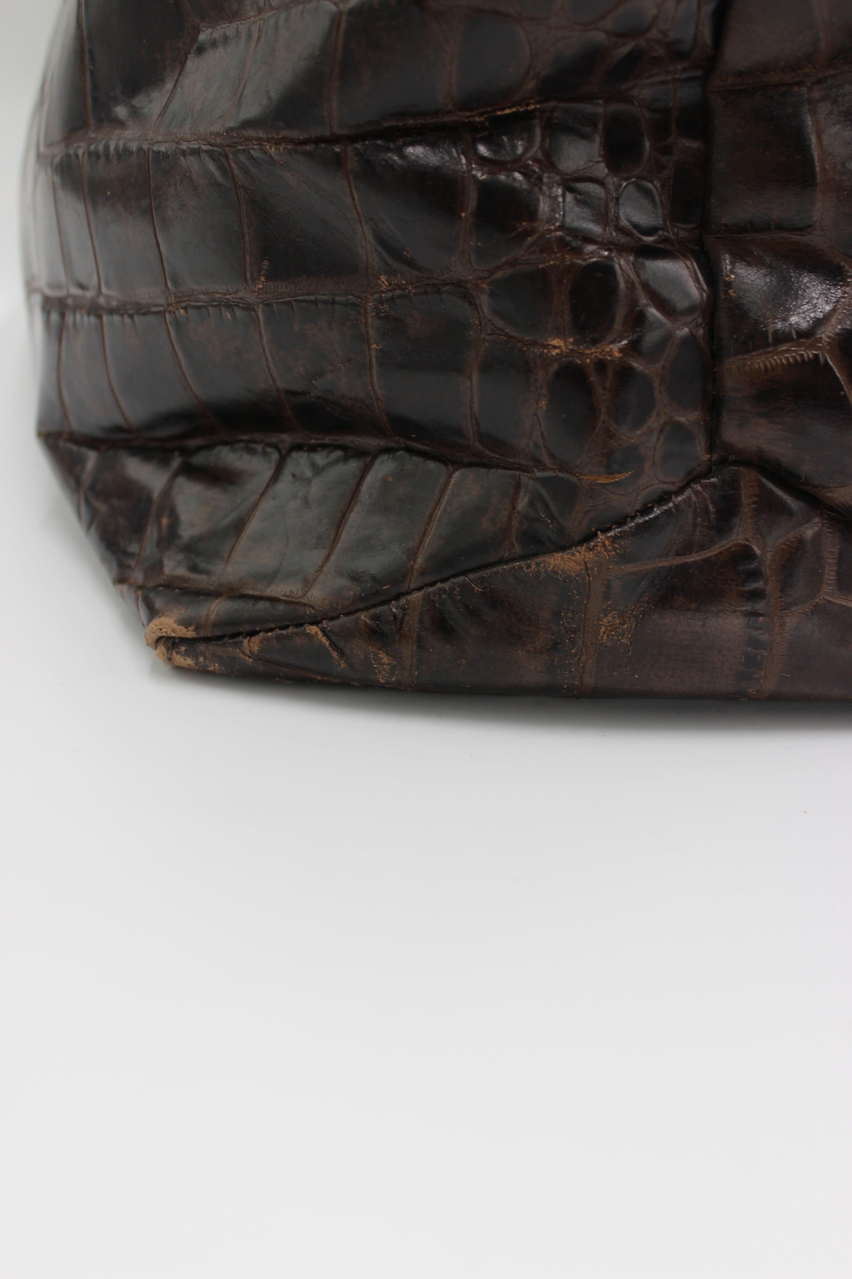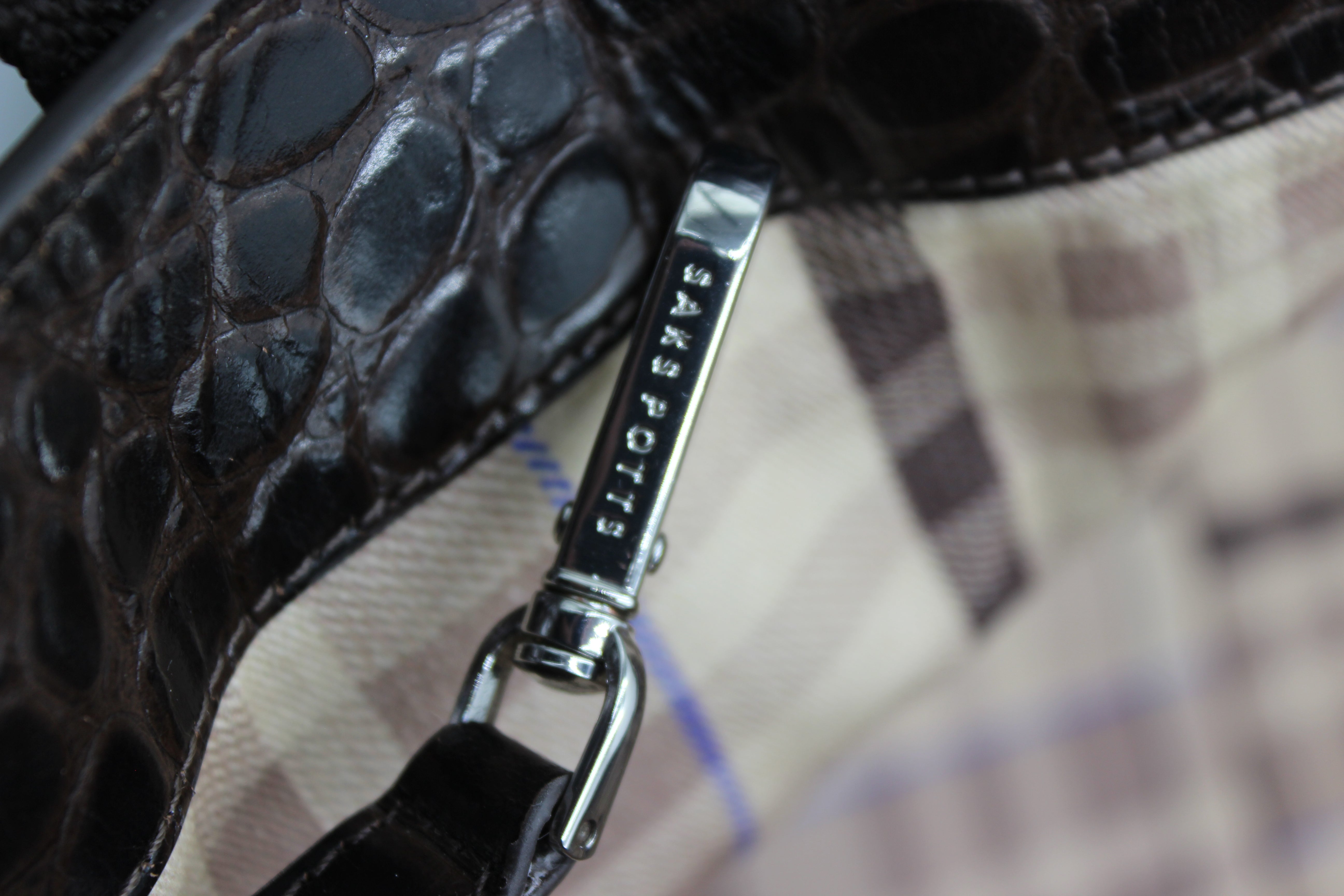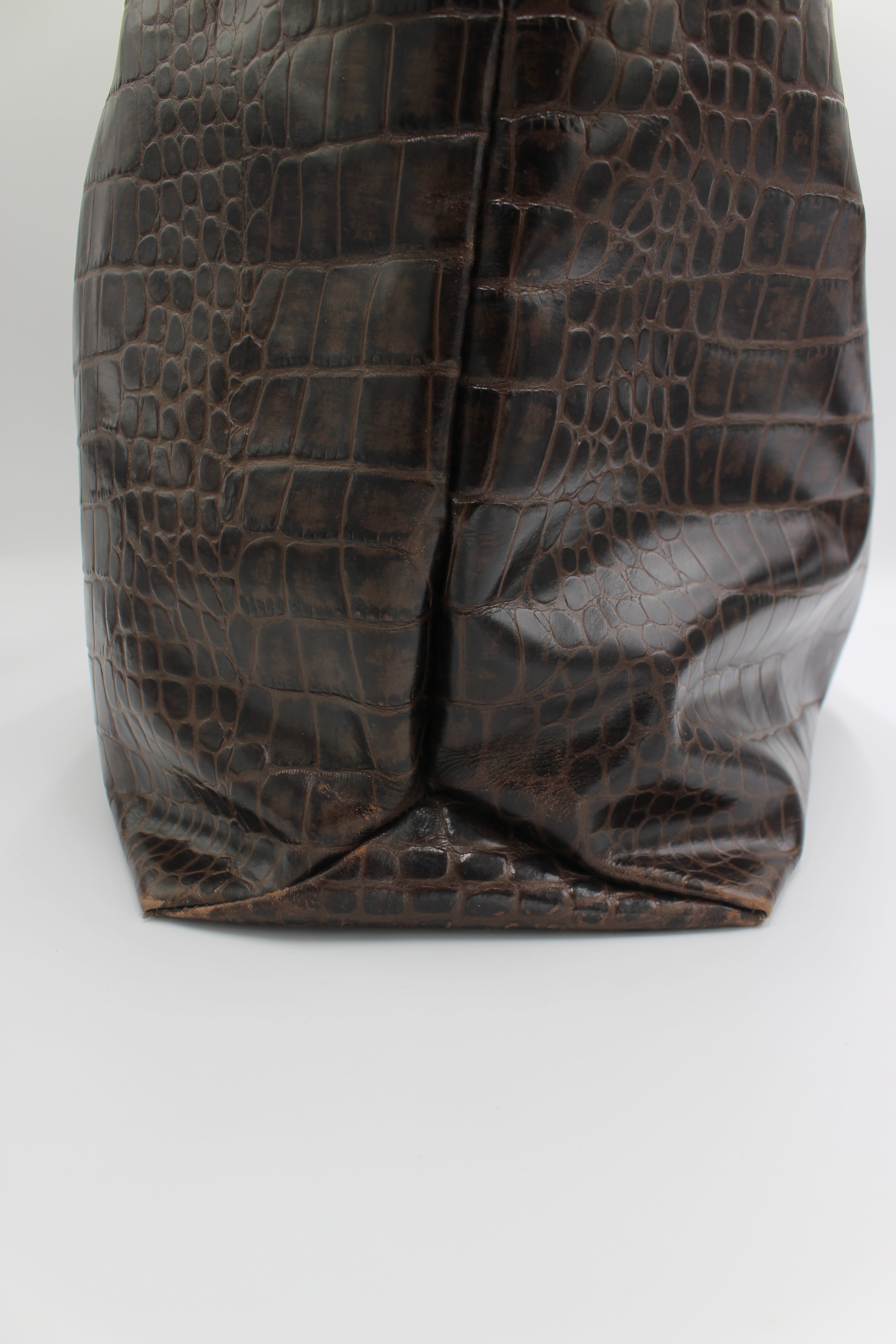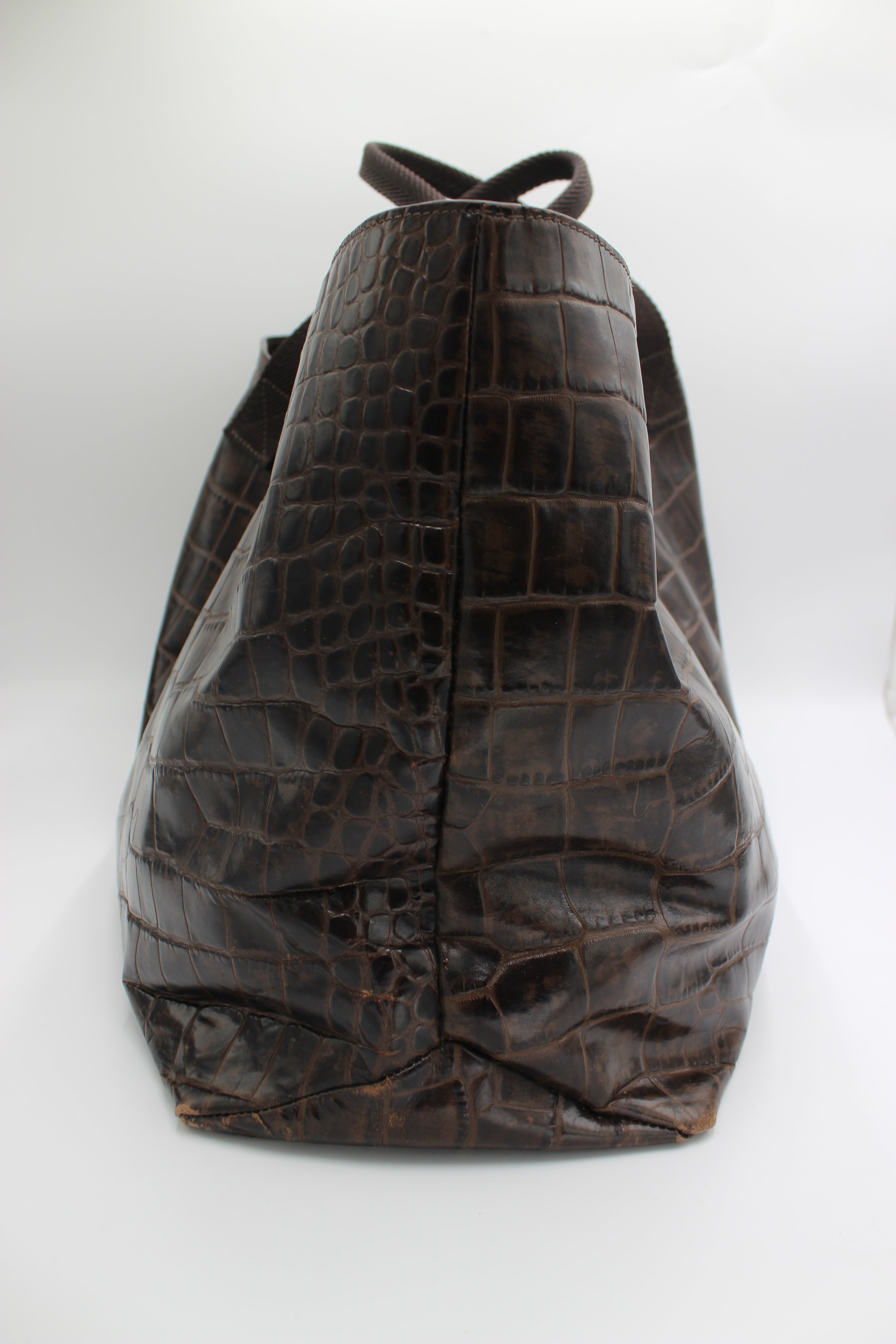 • Crocodile-embossed brown leather finish