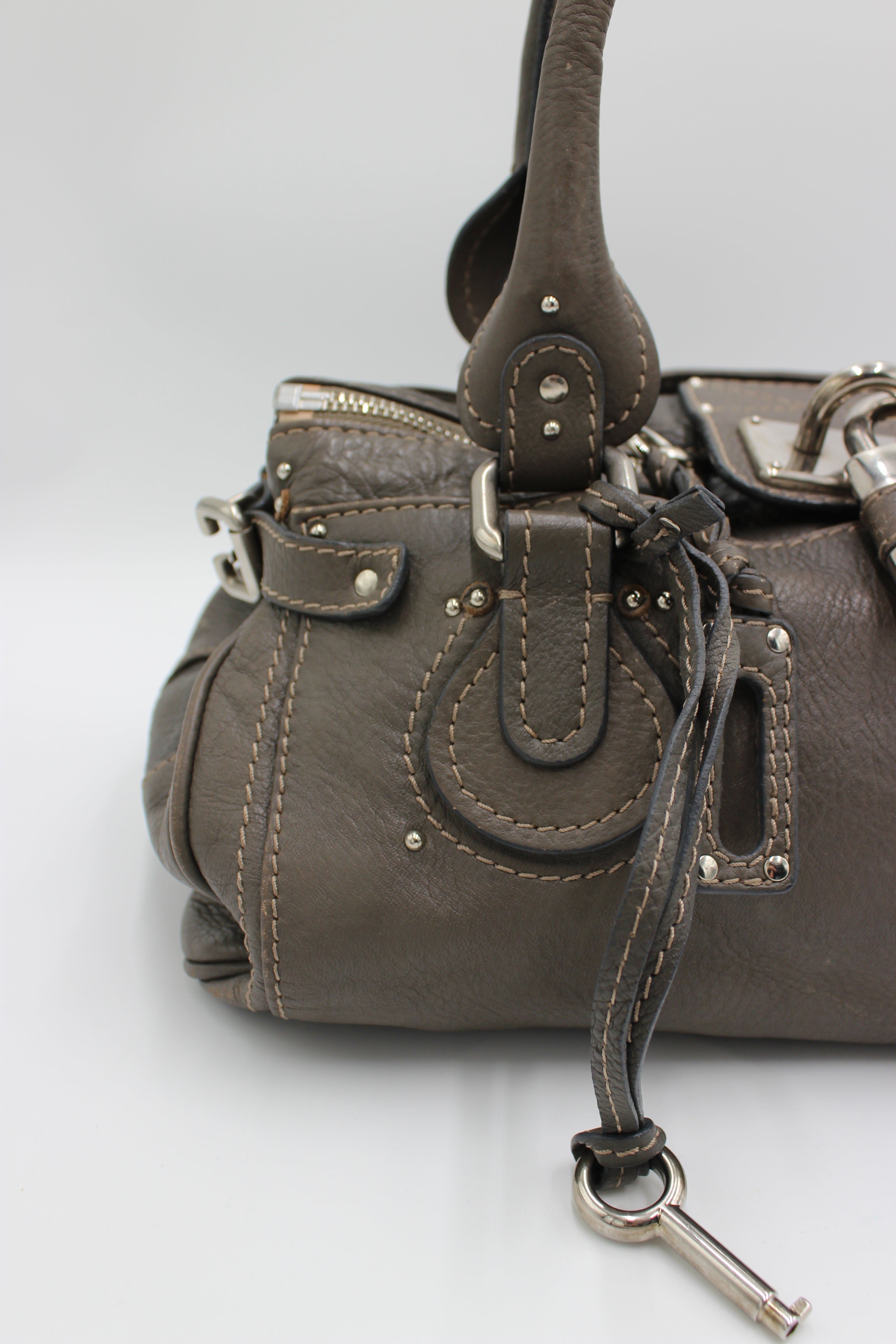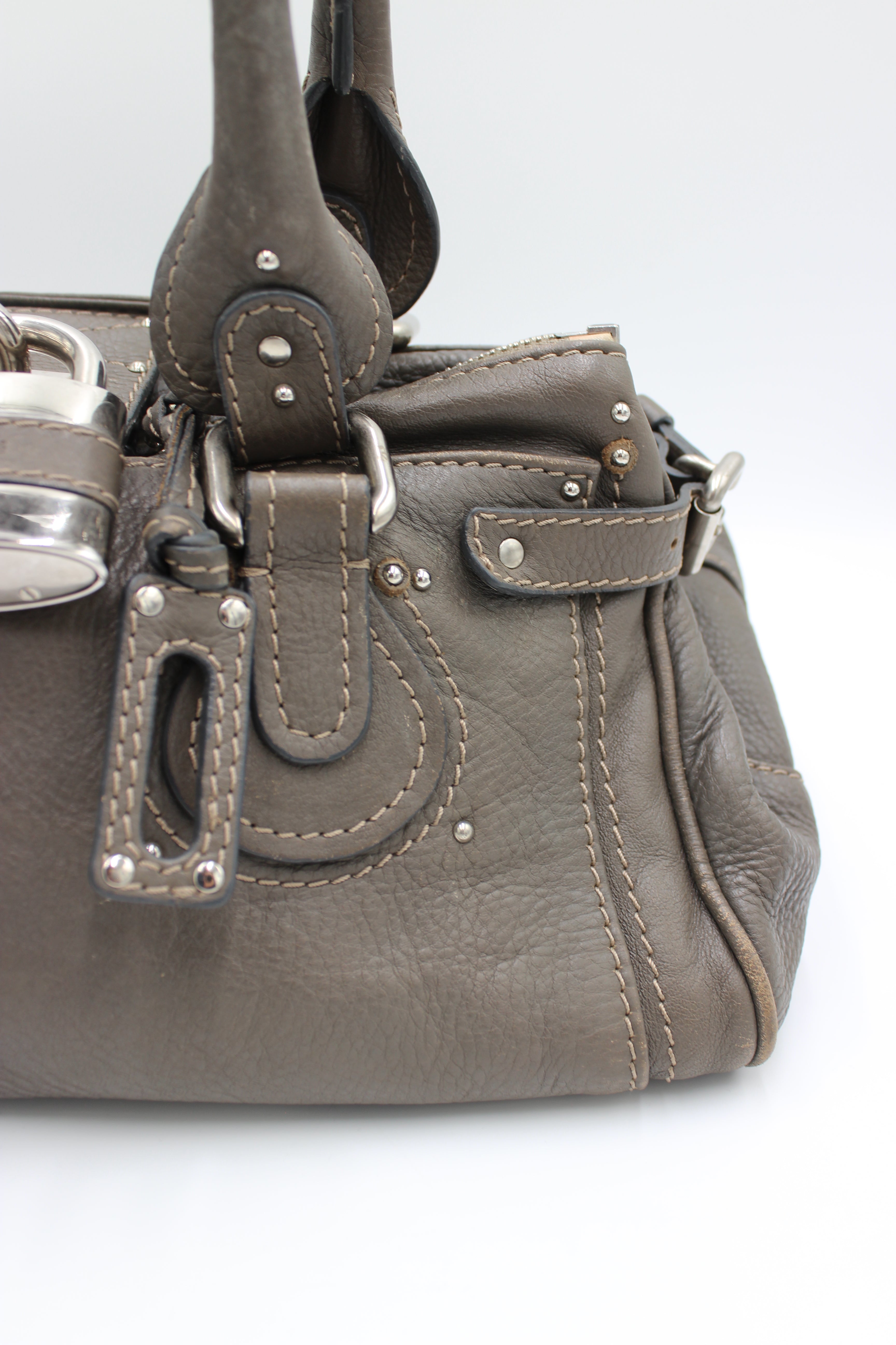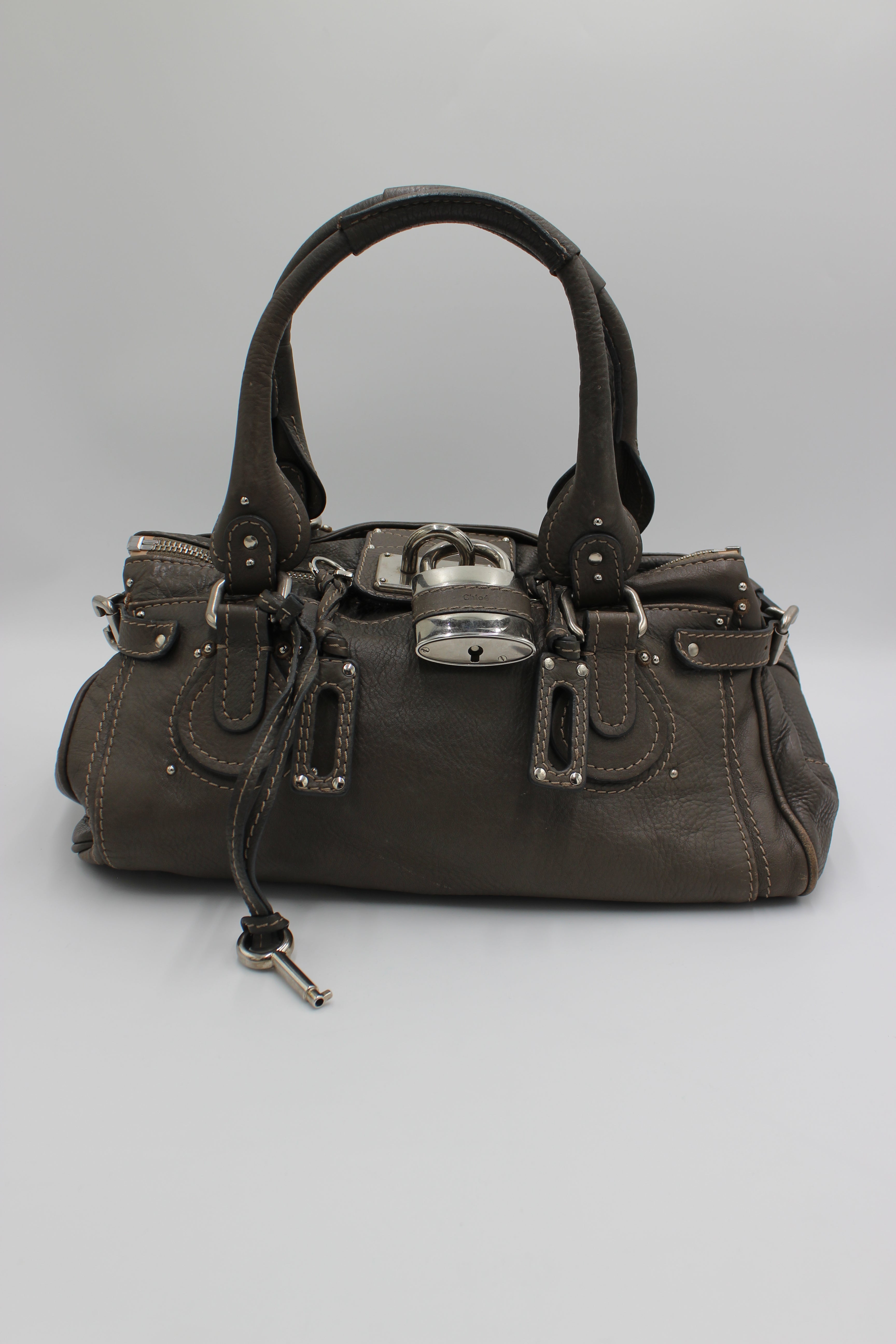 Chloé Paddington er en ikonisk vintageklassiker fra 00’erne, kendt for sit karakteristiske design med den markante hængelås og fine læderdetaljer. Denne udgave kommer i en elegant taupe/gråbrun nuance med sølvfarvet hardware, som gør den nem at style til både hverdag og mere dressed looks.