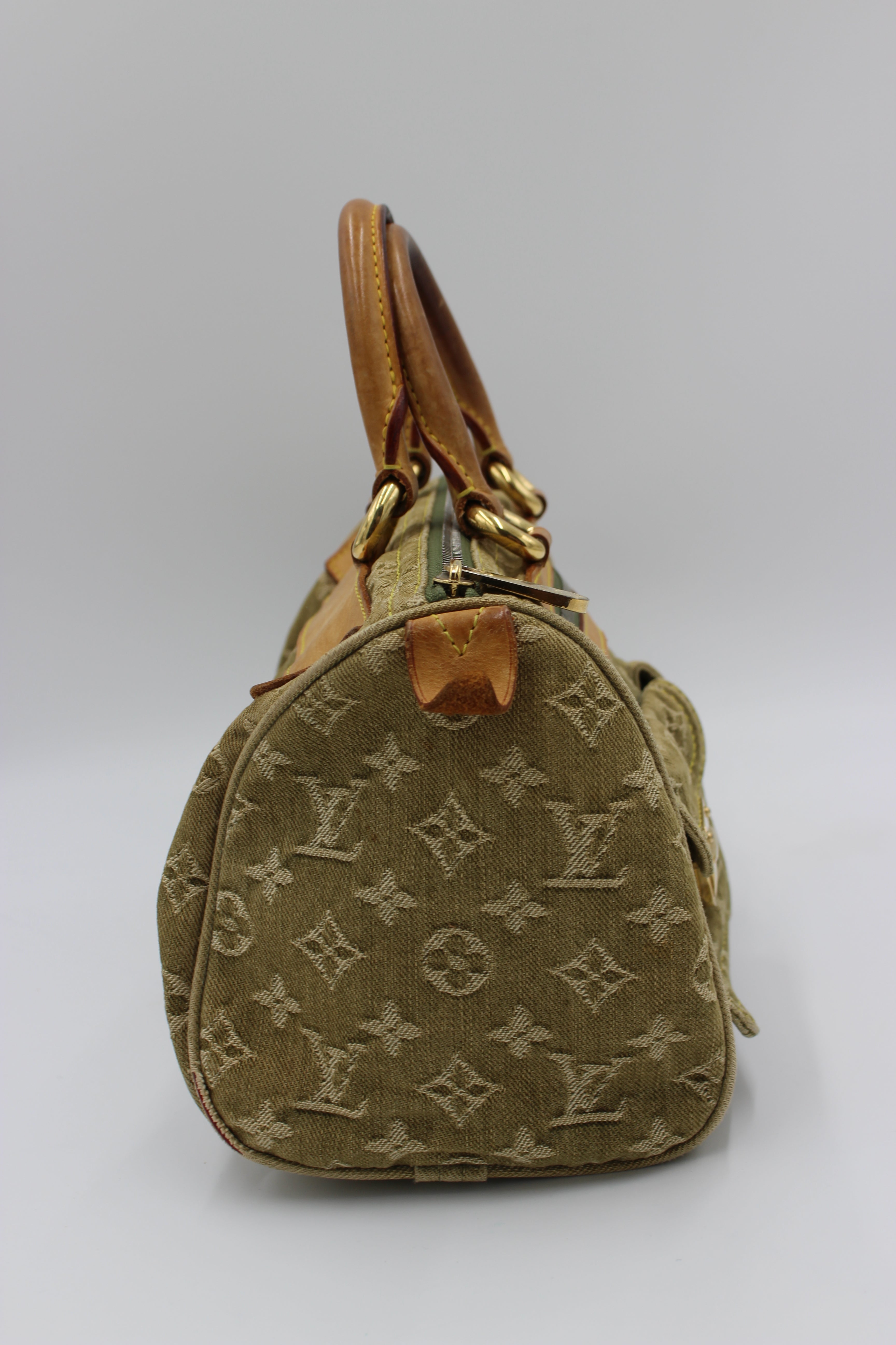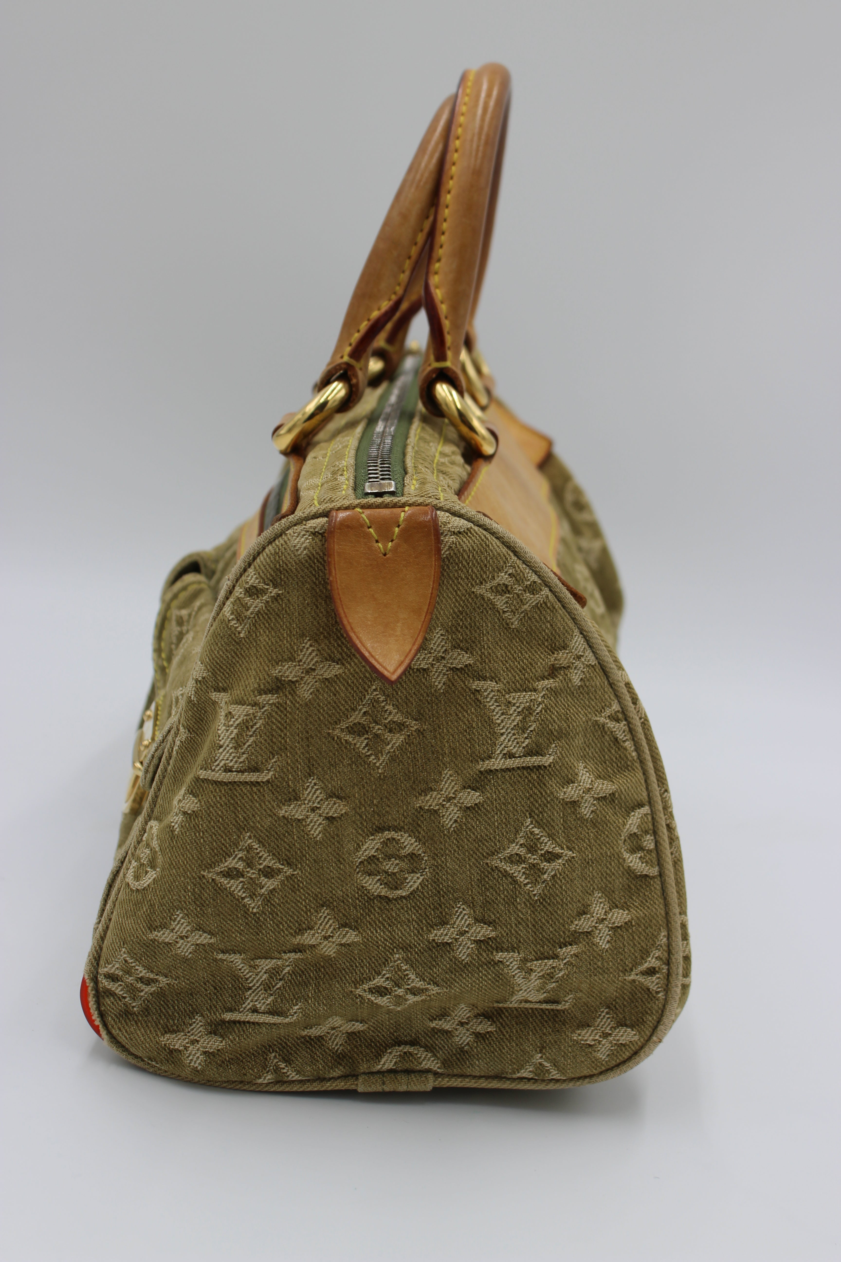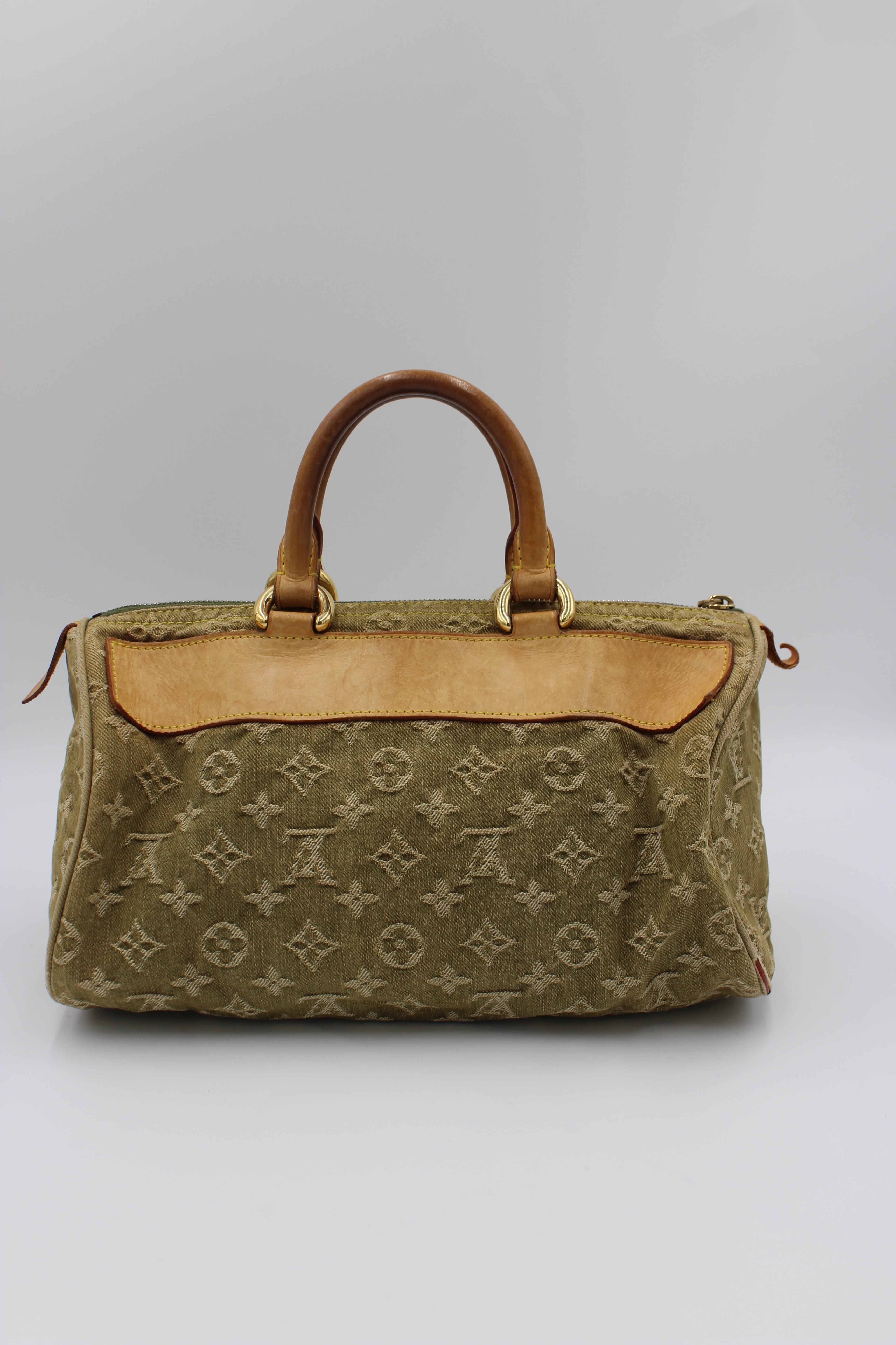 Om tasken: Louis Vuitton Neo Speedy i grøn denim er en del af den ikoniske Monogram Denim-kollektion, lanceret i midten af 2000’erne under Marc Jacobs. Tasken kombinerer Louis Vuittons klassiske monogram med et afslappet, street-inspireret udtryk i stonewashed denim og naturfarvet Vachetta-læder, som patinerer smukt over tid.