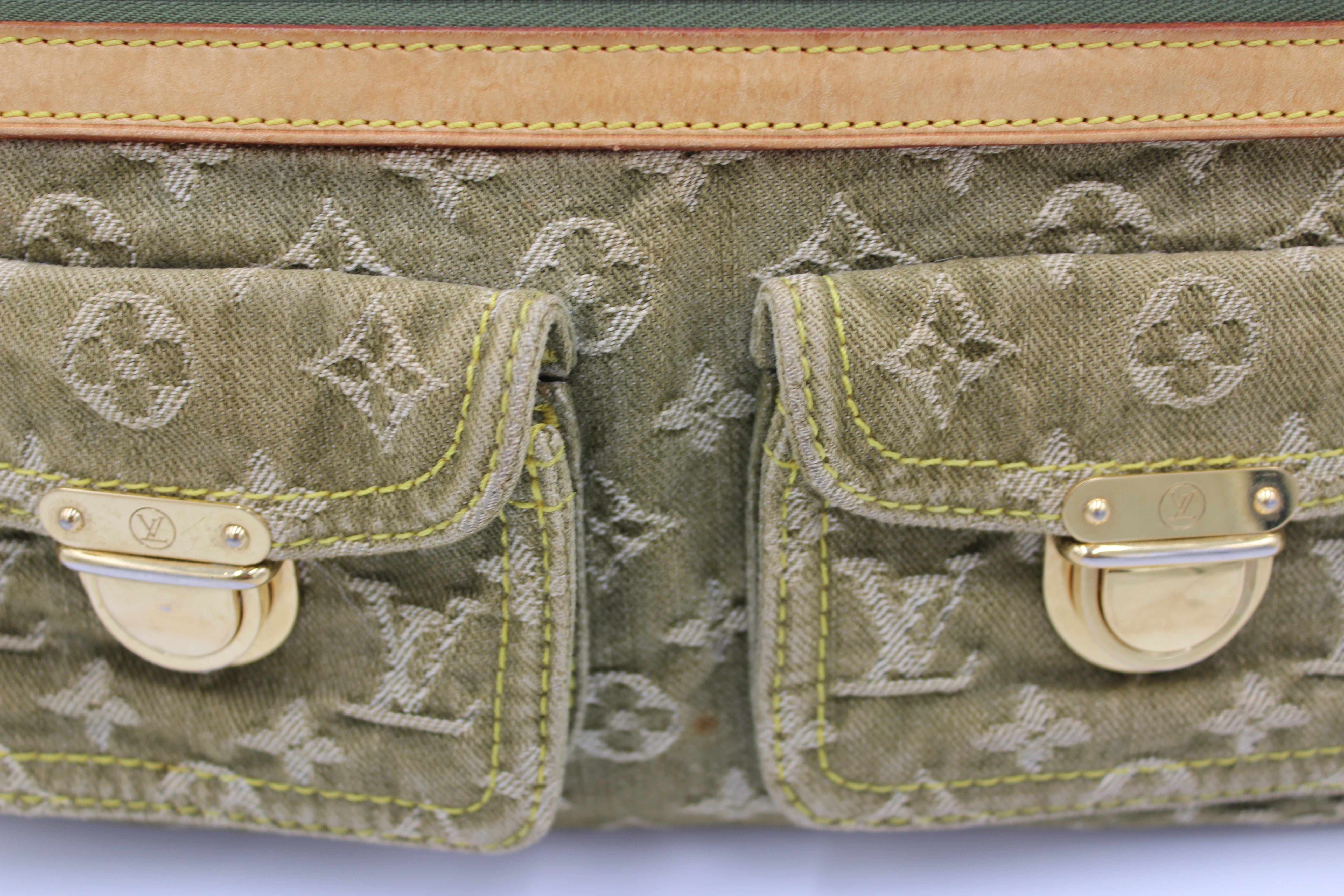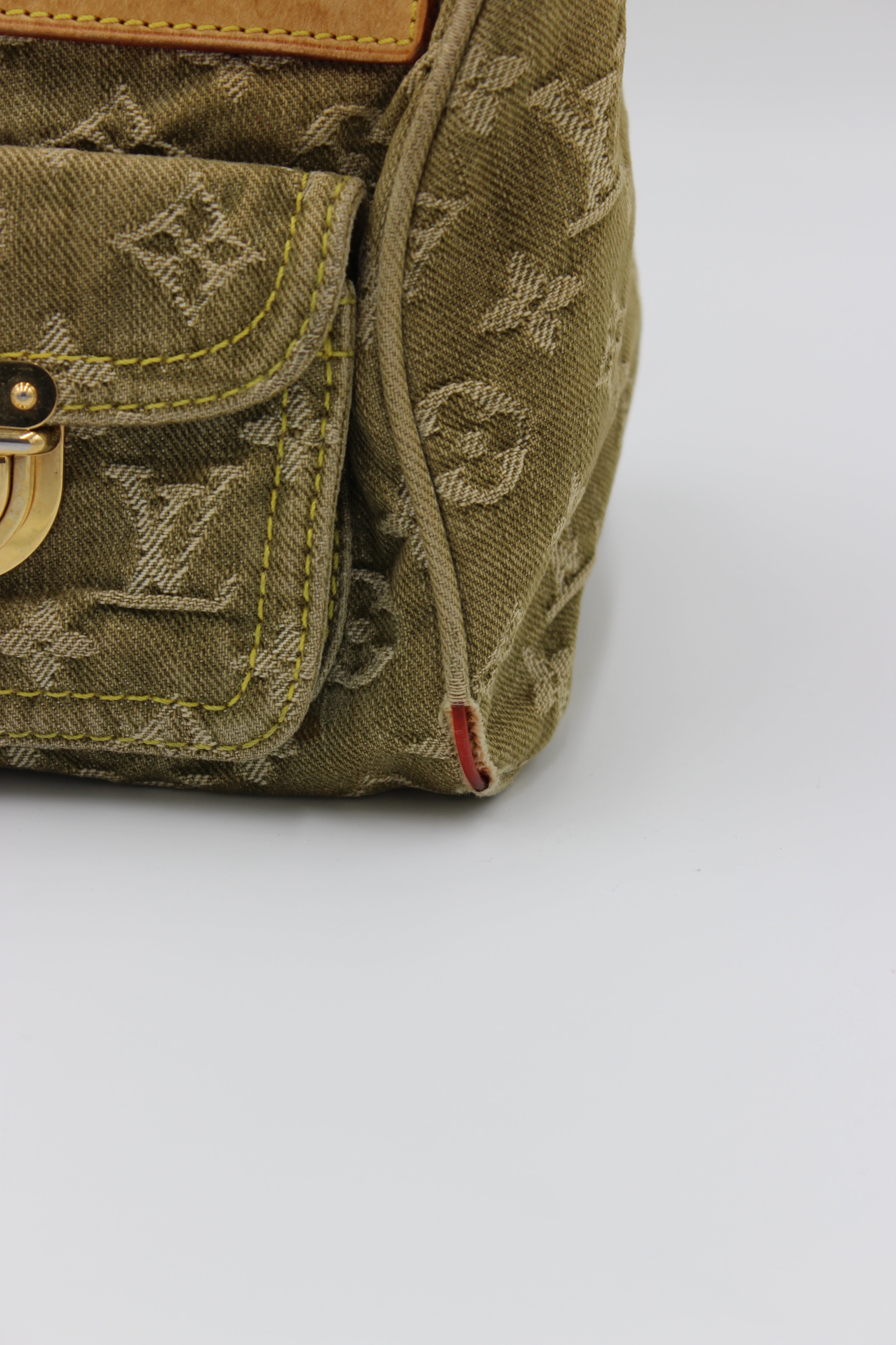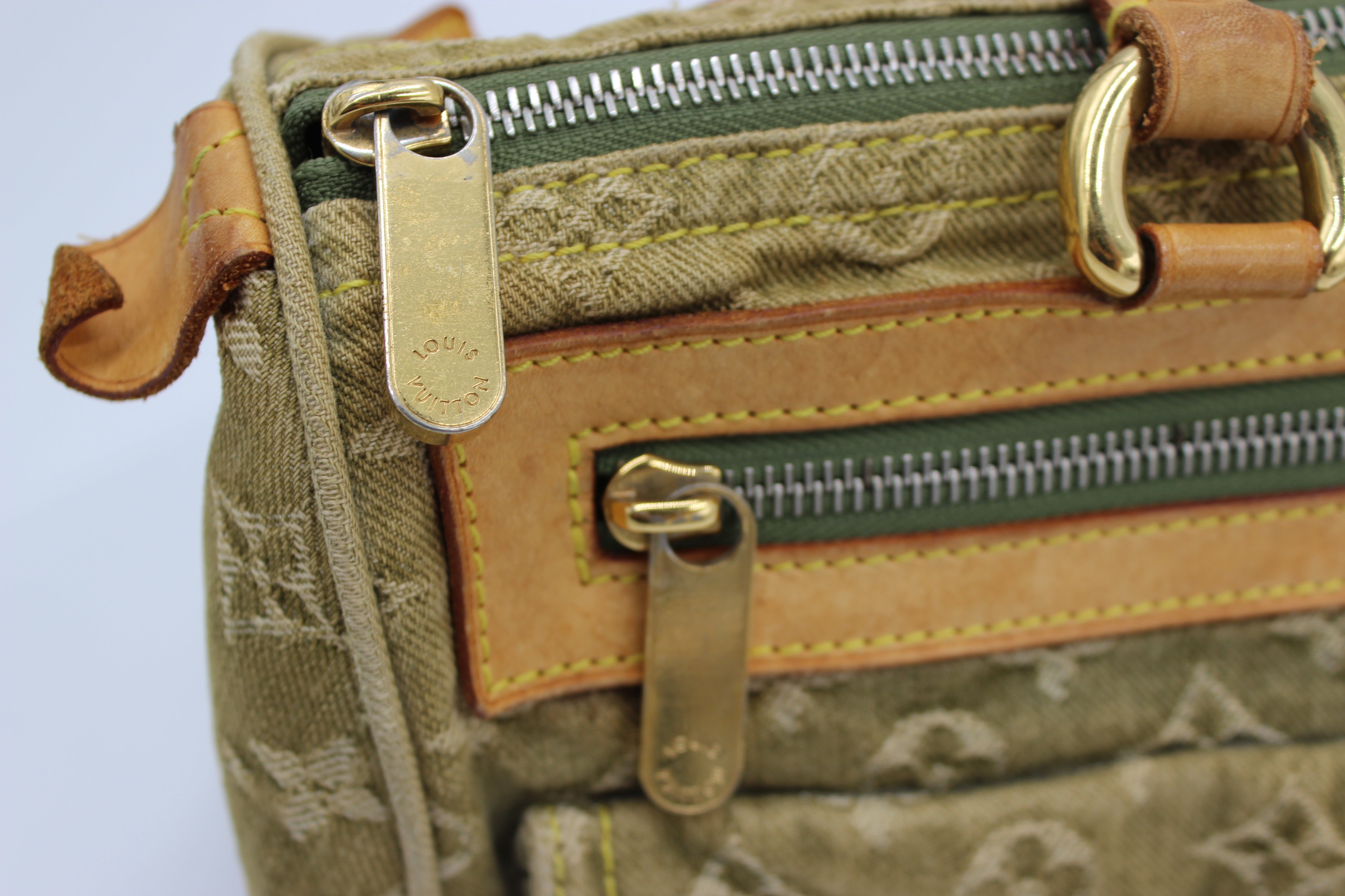 Om tasken: Louis Vuitton Neo Speedy i grøn denim er en del af den ikoniske Monogram Denim-kollektion, lanceret i midten af 2000’erne under Marc Jacobs. Tasken kombinerer Louis Vuittons klassiske monogram med et afslappet, street-inspireret udtryk i stonewashed denim og naturfarvet Vachetta-læder, som patinerer smukt over tid.