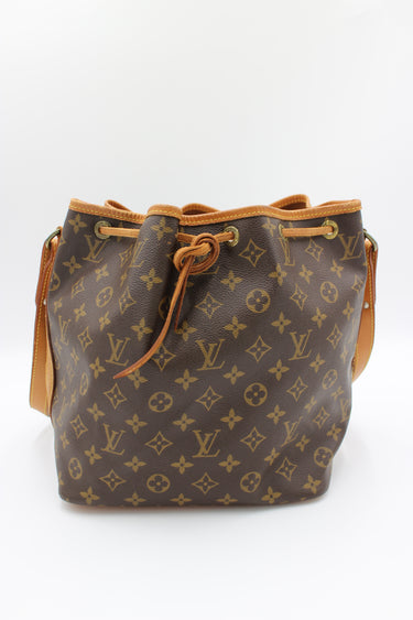 Taskens historie: Oprindeligt designet til at bære champagneflasker. Med sit ikoniske snøre-luk og tidløse monogram lærred er Petit Noé både elegant og praktisk.