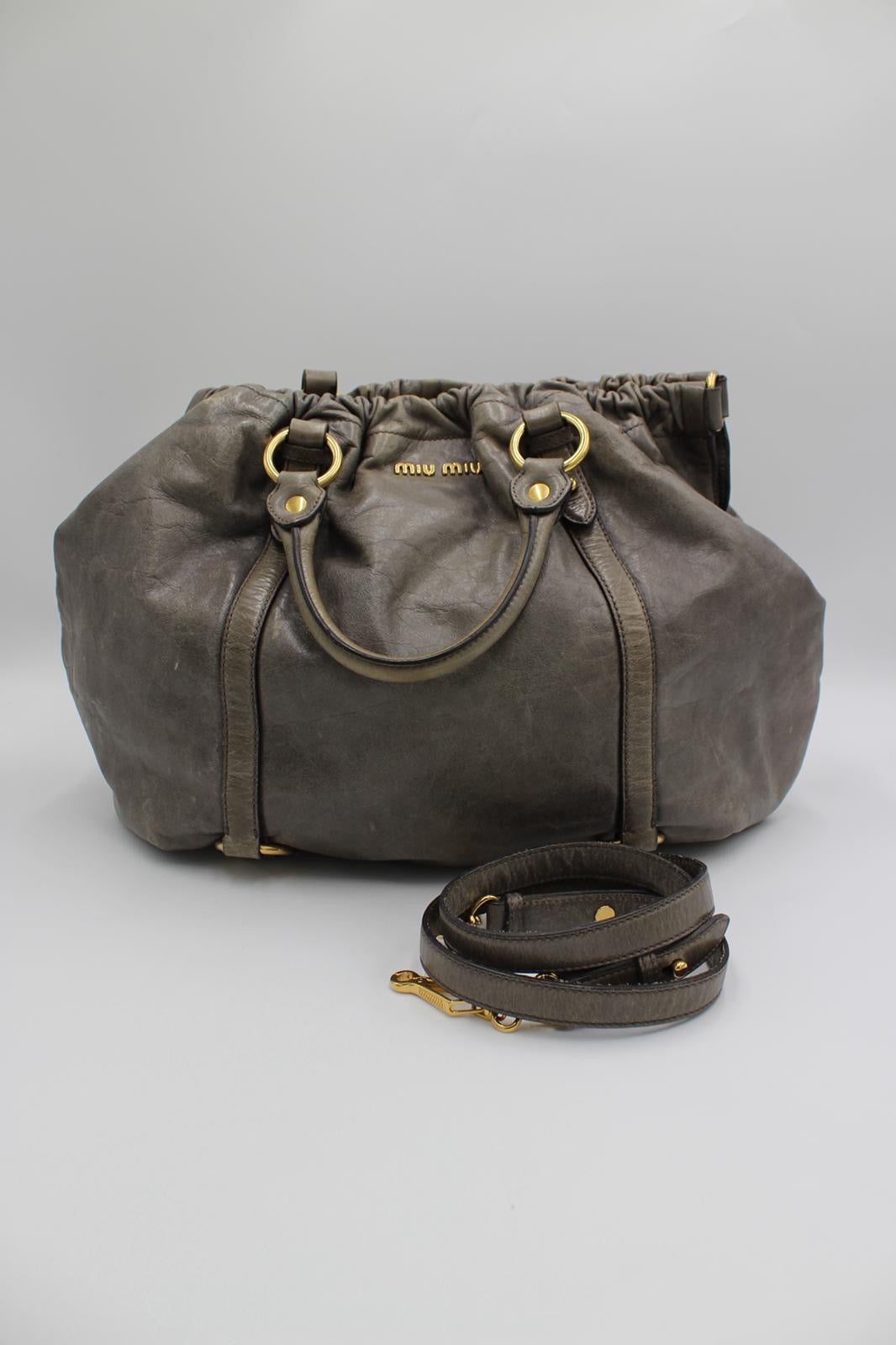 Miu Miu Vitello Lux Gathered Leather Hobo Bag er en ikonisk og feminin taske med et afslappet, luksuriøst udtryk. Tasken er udført i blødt Vitello Lux-læder i en elegant grå nuance og har de karakteristiske gathered leather-detaljer, som giver et eksklusivt og genkendeligt Miu Miu-look. Den bløde hobo-silhuet falder flot og gør tasken ideel til både hverdag og mere dressed outfits.